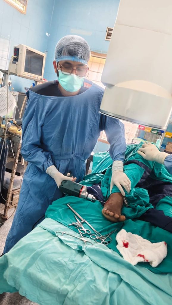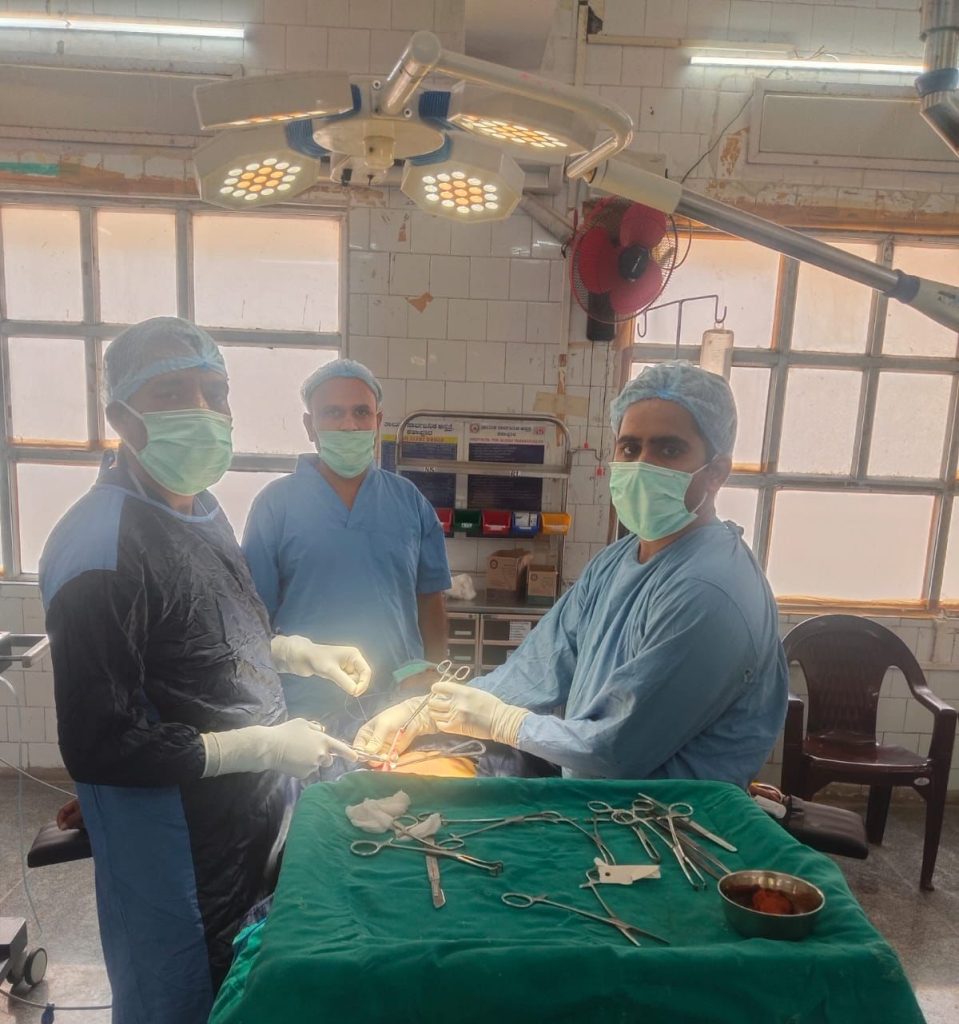 “ಆಸ್ಪತ್ರೆಯ ಆಡಳಿತ ವೈದ್ಯಾಧಿಕಾರಿ ಡಾ. ಯಲ್ಲಪ್ಪ ಹುಲ್ಕಲ್ ರವರು ಅಪೆಂಡಿಕ್ಸ್ ಶಸ್ತ್ರಚಿಕಿತ್ಸೆ ಮಾಡುತ್ತಿರುವುದು”