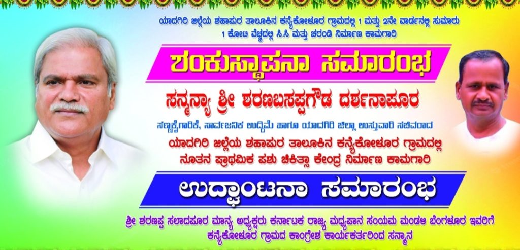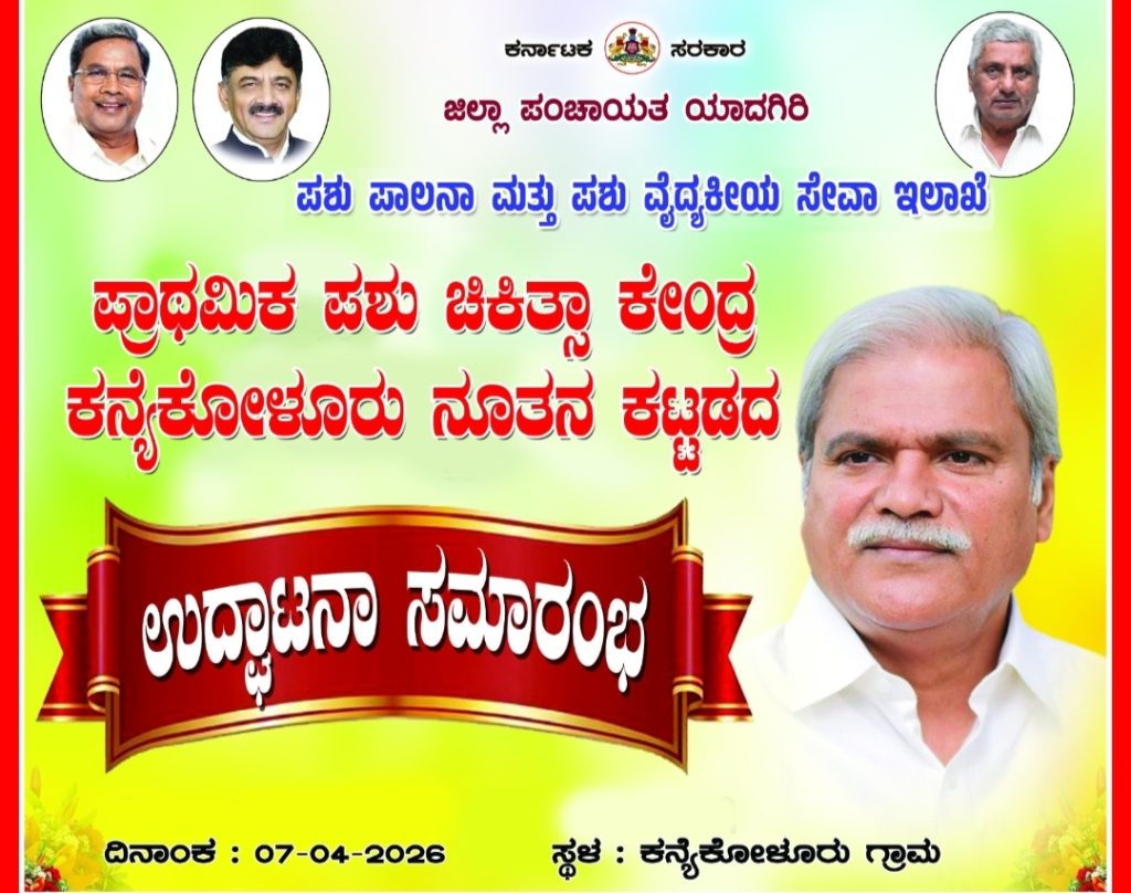 ತಾಲೂಕಿನ ಕನ್ಯಾ ಕೋಳೂರು ಗ್ರಾಮದಲ್ಲಿ ಸಣ್ಣ ಕೈಗಾರಿಕೆ ಮತ್ತು ಸಾರ್ವಜನಿಕ ಉದ್ದೆಮೆ ಹಾಗೂ ಯಾದಗಿರಿ ಜಿಲ್ಲಾ ಉಸ್ತುವಾರಿ ಸಚಿವರು ಗ್ರಾಮದ ಪ್ರಾಥಮಿಕ ಪಶು ಚಿಕಿತ್ಸಾ ಕೇಂದ್ರದ ನೂತನ ಕಟ್ಟಡ ಉದ್ಘಾಟನೆ ಮಾಡಲಿದ್ದು, ಗ್ರಾಮದ ಮೂರನೇ ವಾರ್ಡಿನಲ್ಲಿ 50 ಲಕ್ಷದ ಅನುದಾನದಲ್ಲಿ ಸಿಸಿ ರಸ್ತೆ ಮತ್ತು ಚರಂಡಿ ಕಾಮಗಾರಿ ವೀಕ್ಷಣೆ ಹಾಗೂ ವಿವಿಧ ಕಾಮಗಾರಿಗಳ ಉದ್ಘಾಟನೆ ಕಾರ್ಯಕ್ರಮವಿದ್ದು,