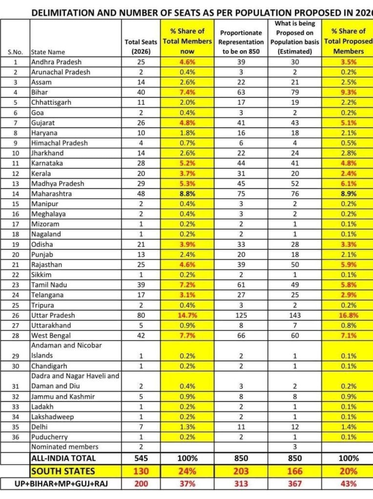 ಇನ್ನು ಕರ್ನಾಟಕ ರಾಜ್ಯಕ್ಕೆ ಕೇವಲ 45 ಸ್ಥಾನಗಳು ಸಿಗಬಹುದು. ಅದೇ ಉತ್ತರ ಪ್ರದೇಶಕ್ಕೆ 120, ಬಿಹಾರ್ ರಾಜ್ಯಕ್ಕೆ 80 ಸ್ಥಾನಗಳು ಸಿಗುತ್ತವೆ. ಅತಿ ಹೆಚ್ಚು ಸ್ಥಾನ ಉತ್ತರ ಭಾರತಕ್ಕೆ ಹೋಗುತ್ತದೆ. ಇದನ್ನು ರಾಜ್ಯದ ಸಂಸದರು ಅರ್ಥ ಮಾಡಿಕೊಂಡಿಲ್ಲ. ಗೊತ್ತಿದ್ದರೂ ಅಧಿಕಾರಕ್ಕಾಗಿ ಬಿಜೆಪಿಯನ್ನು ಬೆಂಬಲಿಸಿರುವುದು ದುರದೃಷ್ಟಕರ.